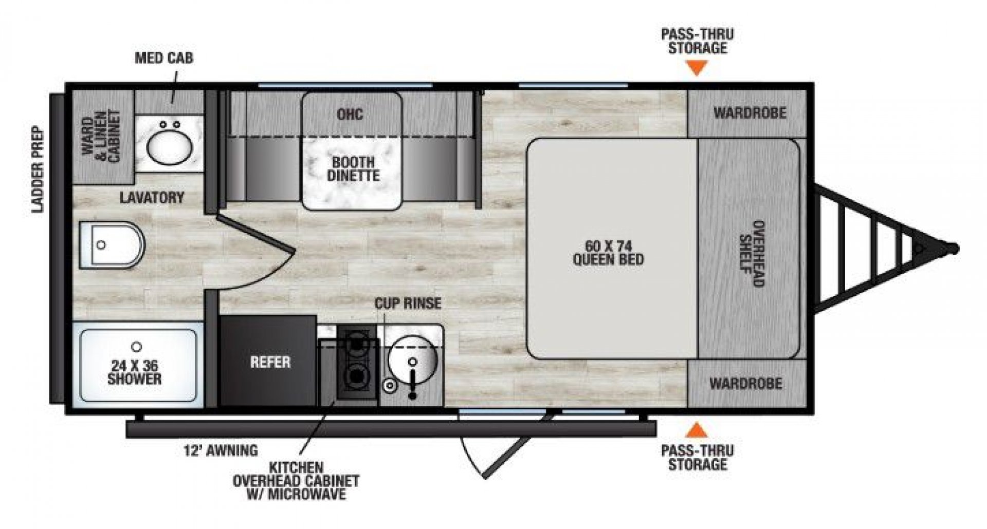 - Air Conditioner: 13,500 BTU Roof-Mounted