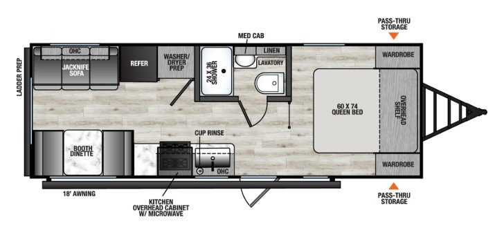 - Awning: 18' Power w/ LED Strip and Adjustable Legs