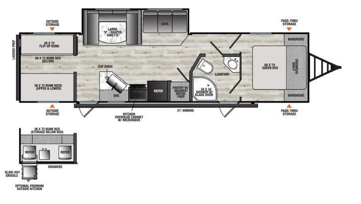 - Awning Info: 20' Power with LED Light Strip & Adjustable Legs