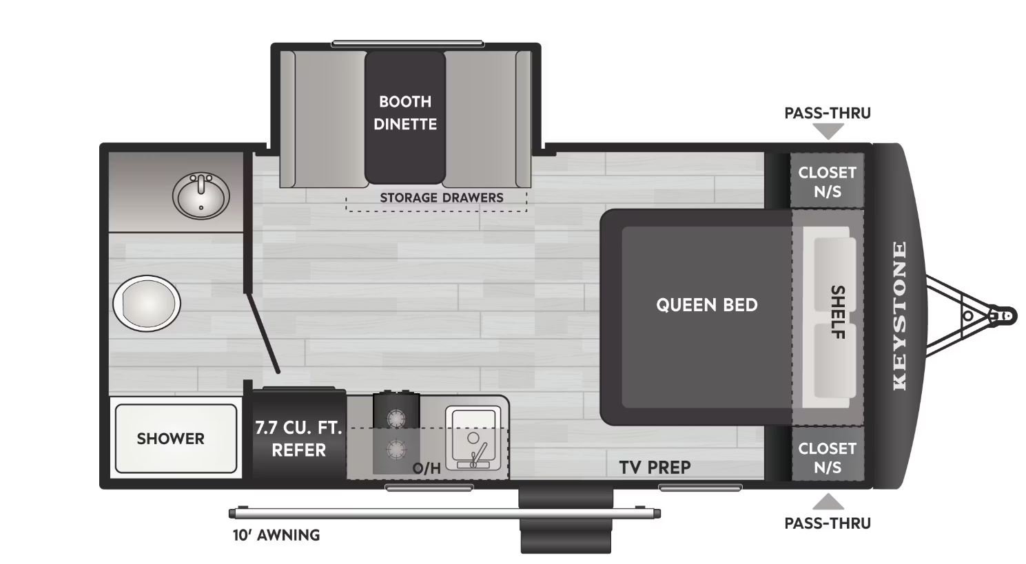 Specifications Specification Name Specification Value RV Type Travel Trailer Shipping Weight 3,498 lb. Carrying Capacity 957 lb. Hitch 455 lb. Length 20 ft 11 in Height 10 ft 2 in Tire-Size ST205/75R14D Fresh Water 21 gal Gray Water 30 gal Waste Water 32 gal Sleeping Capacity 4 Number of Propane Tanks 1 LPG 20 lb. Refrigerator Size 7.70 cu ft