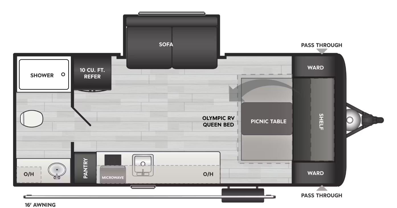 Specifications Specification Name Specification Value RV Type Travel Trailer Shipping Weight 3,977 lb. Carrying Capacity 1,638 lb. Hitch 515 lb. Length 23 ft 4 in Height 9 ft 10 in Tire-Size ST225/75R15E Fresh Water 45 gal Gray Water 34 gal Waste Water 34 gal Sleeping Capacity 3 Number of Propane Tanks 1 LPG 20 lb. Refrigerator Size 10 cu ft
