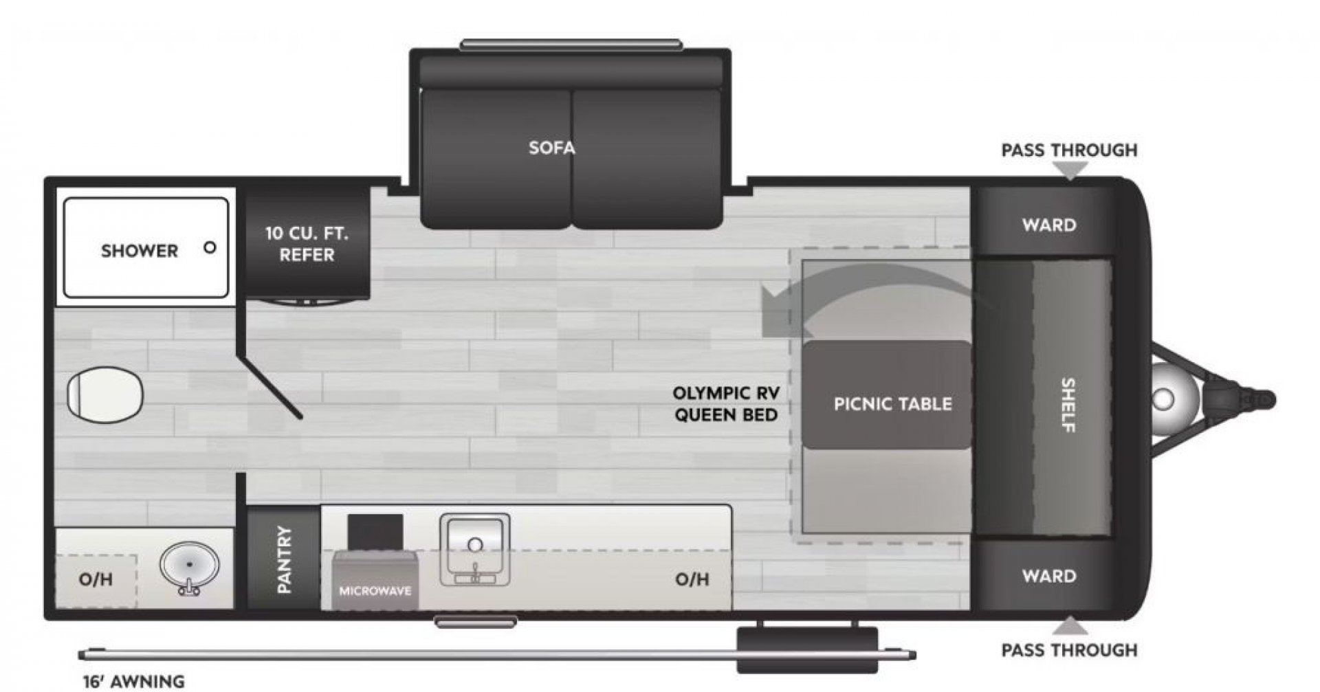 - Full length pass through storage